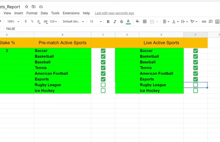 Historical bets reporting on google sheet for PnL tracking